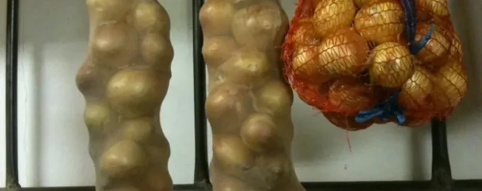 Soğanları hasır sepetlerde, ağlarda, delikli karton kutularda ve keten torbalarda saklamak en iyisidir.